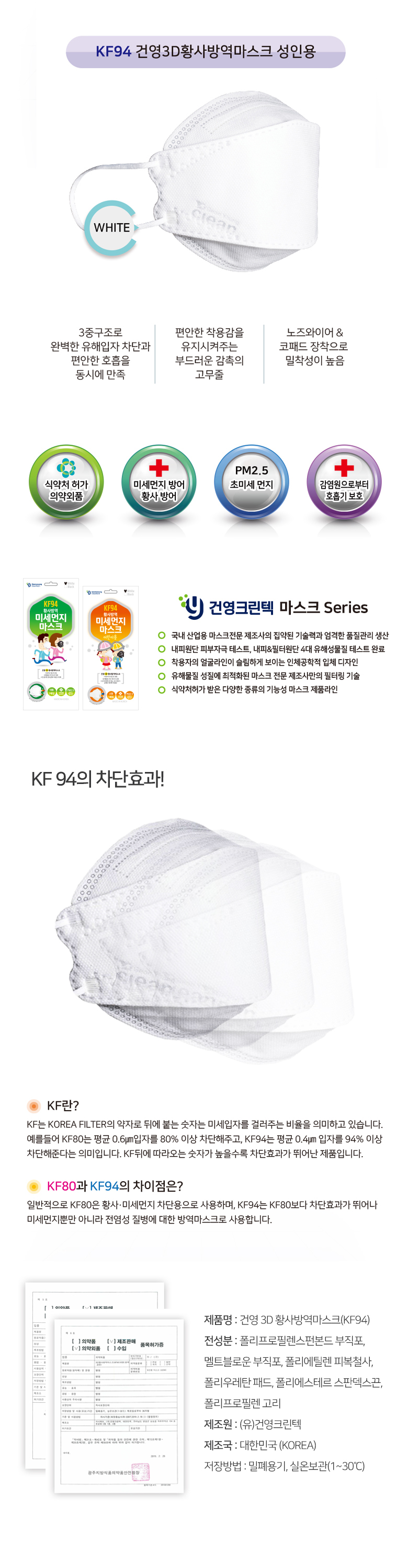 건영 황사방역 미세먼지 마스크 KF94