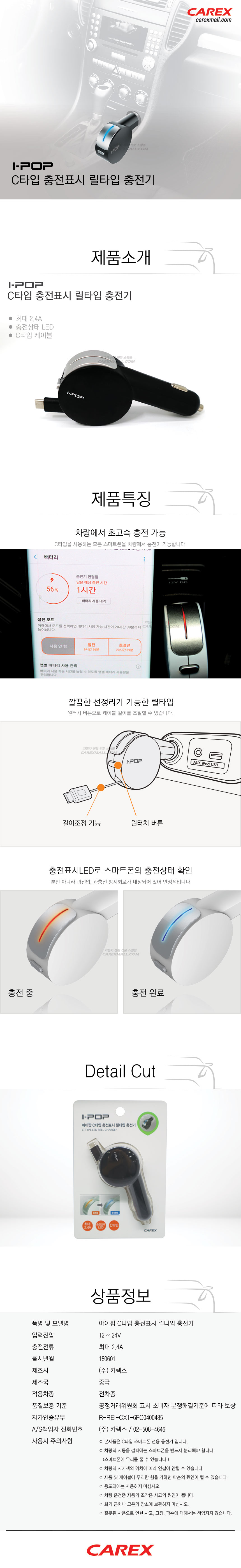 카렉스 아이팝C타입충전표시릴타입충전기